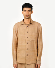 Quickshop This shirt is crafted from handwoven tussar silk in a muted amber...
